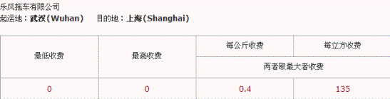 2、到市场信息网站的“运价”页面,在内陆航线中查询武汉到上海的运价,选择其中报价最低的乐风拖车,价格画面如下图: