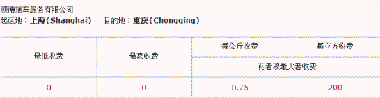 2、到市场信息网站的“运价”页面,在内陆航线中查询上海到重庆的运价,选择其中报价最低的顺德拖车,价格画面如下图:
